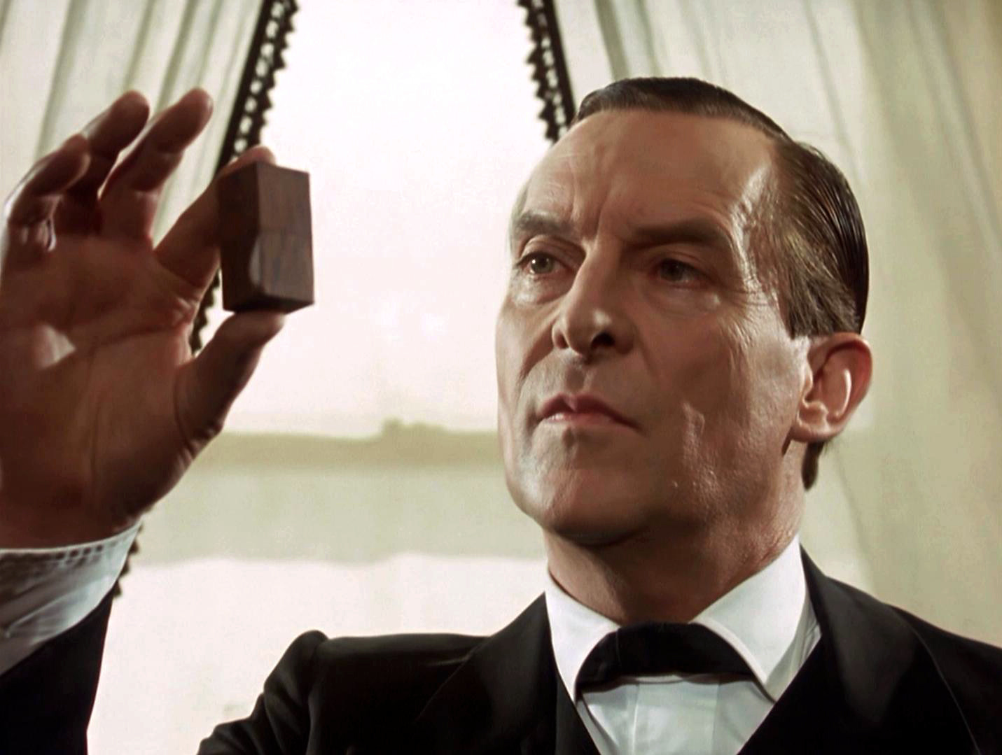 Avec une constante recherche d'esthétisme, la caméra filme avec virtuosité ces superbes moments, nous montrant la pipe fumante, le ballet des figurines, le jeu de gros plans sur les mains et le visage soucieux du détective.