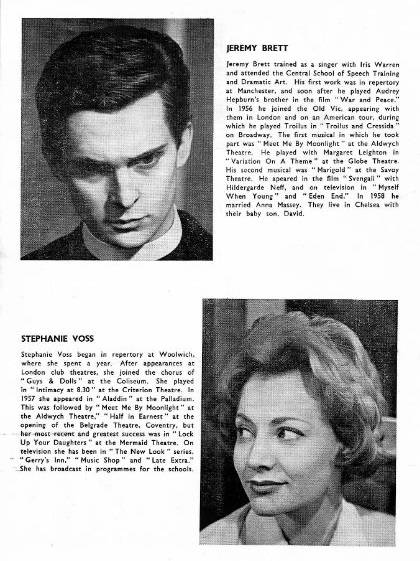 "La représentation d'hier soir a été très bien interprétée. Jeremy Brett, en particulier, mérite des compliments pour sa prestation de Highfield. Le danger de jouer un homme qui ne dira pas un mensonge pour sauver un ami, est évident; une touche d'attitude moralisatrice et la sympathie du public est perdue. M. Brett lui donne l'honorable simplicité qui nous convainc, que, pour lui, une seule façon d'agir est possible. Enfin, et c'est une surprise pour moi, il chante plutôt bien. " - W.A. Darlington.