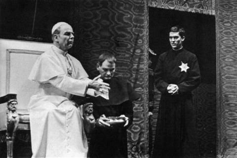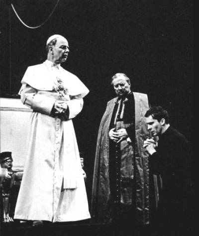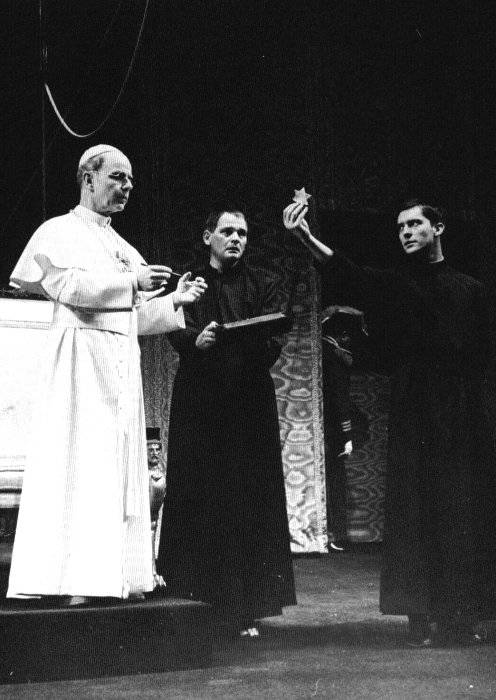 Donnant lieu à des manifestations parfois violentes, une sécurité renforcée était nécessaire aux alentours du Brooks Atkinson Theatre à Broadway (voir Articles de presse ci-dessus). Le soir de la première représentation du 26 Février1964, protestants, juifs et catholiques laïques, ainsi qu'un groupe de néo-nazis, se mirent en faction devant le théâtre, scandant des slogans de protestation si fort qu'on les entendait à l'intérieur du théâtre.