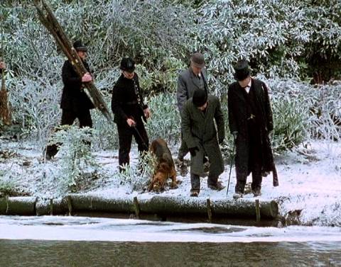 Les oppositions entre noir et blanc, paysages immaculés de neige, silhouettes noires, corps prisonniers sous la glace, accentuent le malaise et renforcent la tragédie.