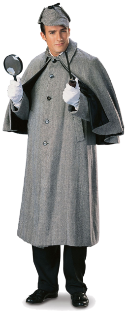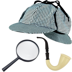 En effet l'imagerie populaire qui montre le détective portant un deerstalker et fumant une pipe calebasse, n'est pas canonique. Rappelons que le deerstalker (littéralement traqueur de daim) est une casquette de drap à double visières à l'avant et à l'arrière, avec deux volets latéraux liés au-dessus de la tête ou rabattus sur les oreilles.