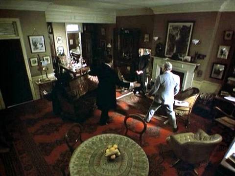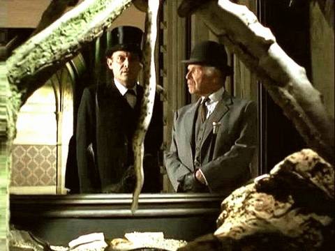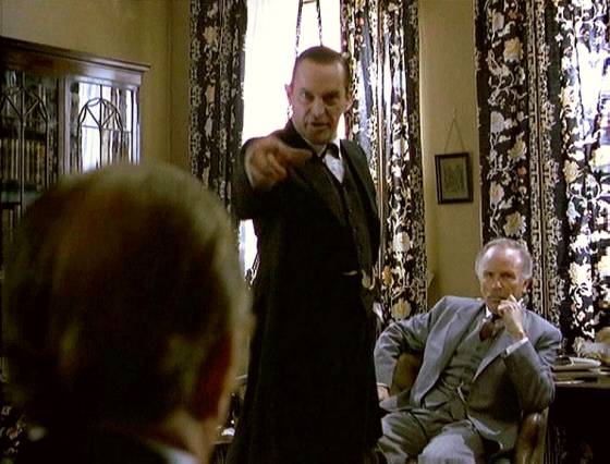 La confrontation de Milverton face à Holmes et Watson au 221b est une scène particulièrement réussie. On ressent la vive tension qui habite les deux hommes et plane dans la pièce. Holmes élabore une petite mise en scène pour tenter de déstabiliser Milverton.