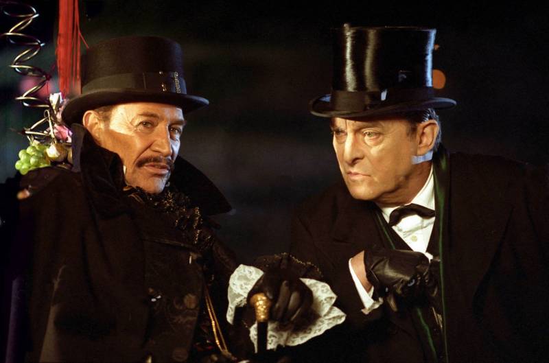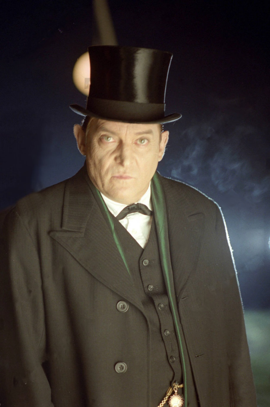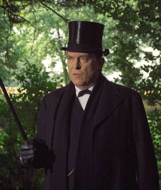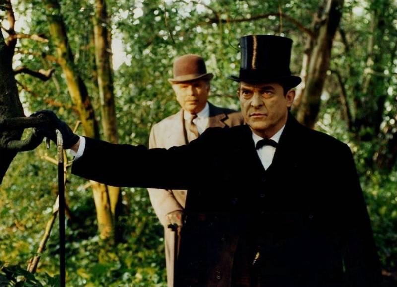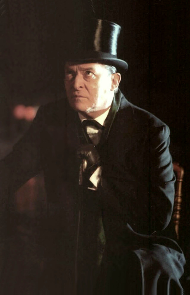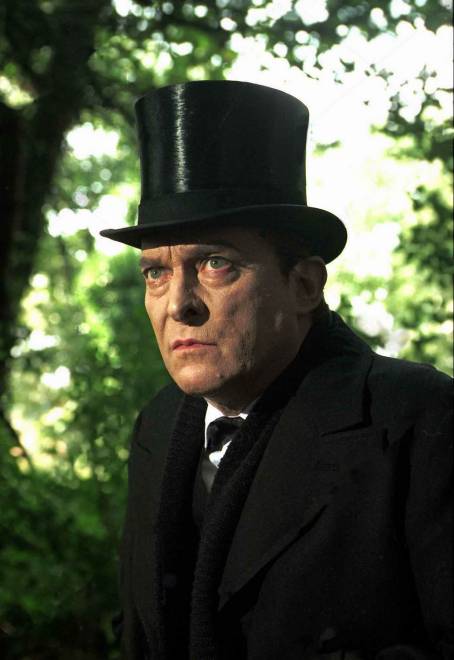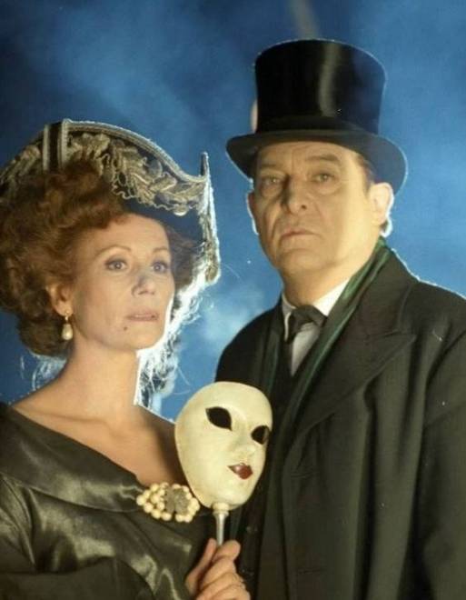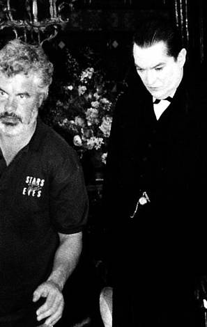 Photo prise à l'occasion d'une interview de Jeremy Brett par David Stuart-Davies pendant le tournage des "Trois Pignons" début Septembre 1993, près de Manchester. Dans sa caravane, Jeremy portait déjà le maquillage blanc de Sue Milton, sa maquilleuse attitrée depuis le début de la série et s'apprêtait à tourner la scène de confrontation avec Isadora Klein.