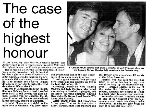"He never received the award he deserved for such a remarkable piece of acting but over the years, he came to realise how much he had achieved and what pleasure he had given to millions of people from young children to the oldest and most critical Sherlockians. "