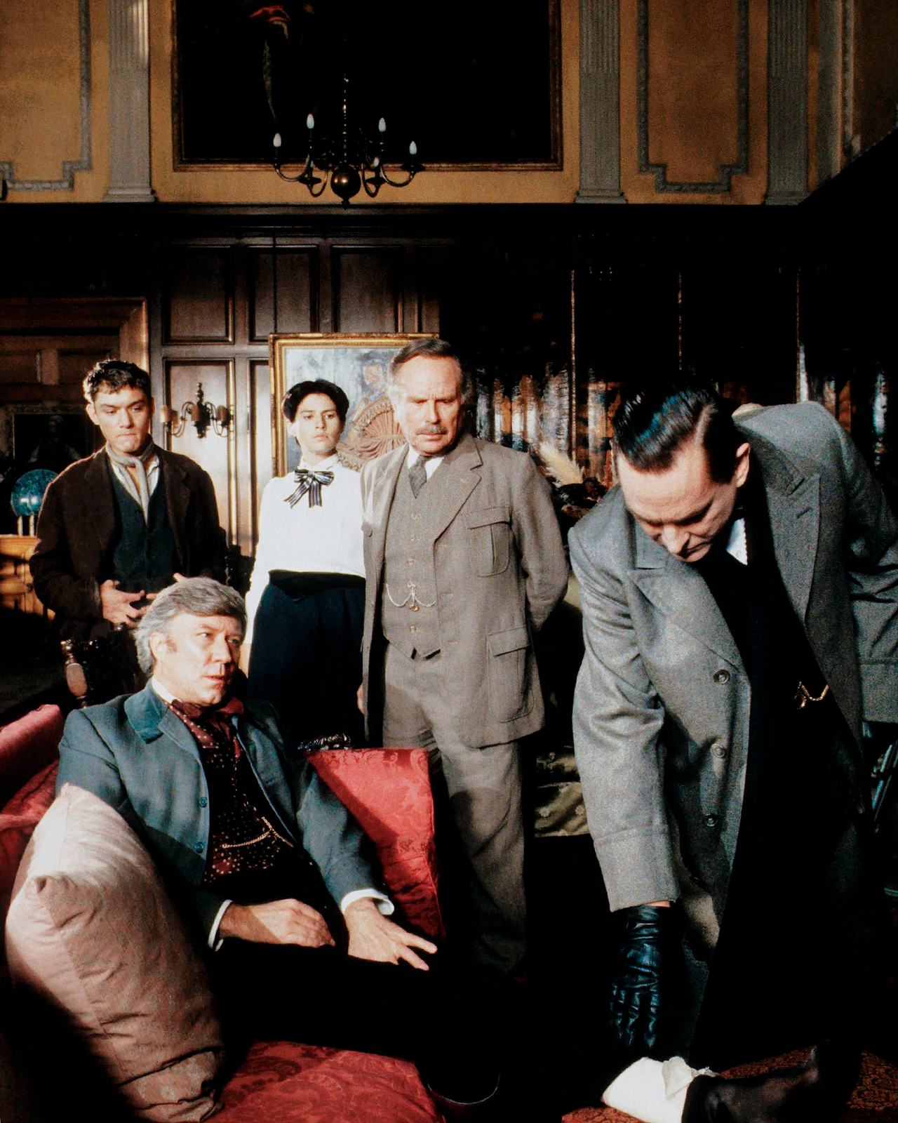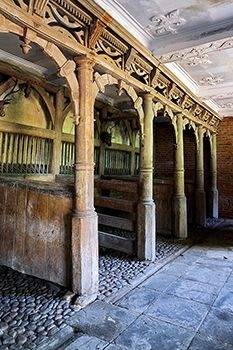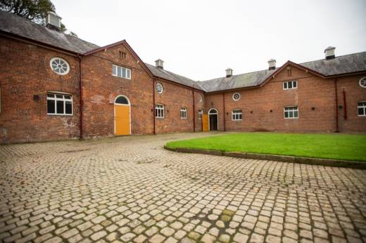 Intérieur de Dunham Massey Hall utilisé pour Shoscombe Old Place et les grandes écuries traditionnelles en brique entourant une cour carrée de Peover Hall à Tatton.