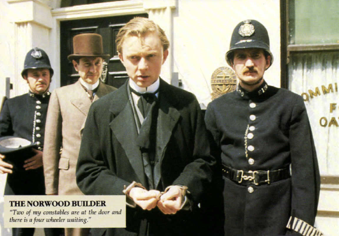 Le malheureux jeune homme vient de découvrir la terrible accusation dans la presse et n'a que quelques instants pour se confier à Holmes avant d'être menoté et arrêté par la police. McFarlane échappera-t-il à la potence ?