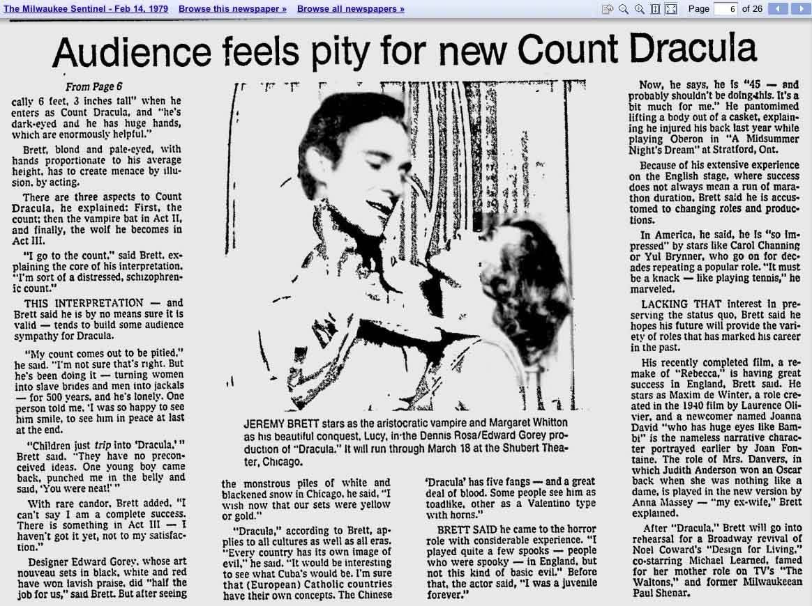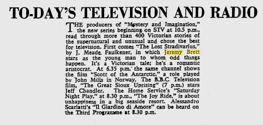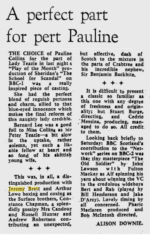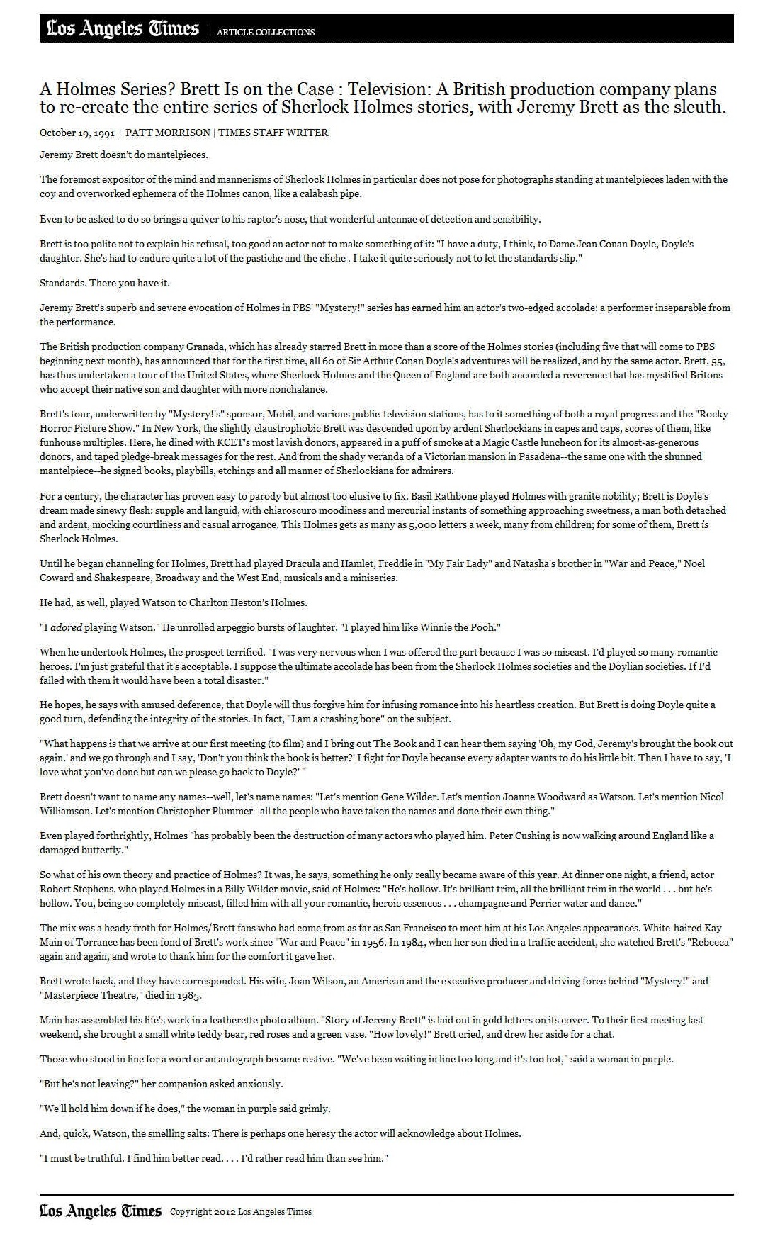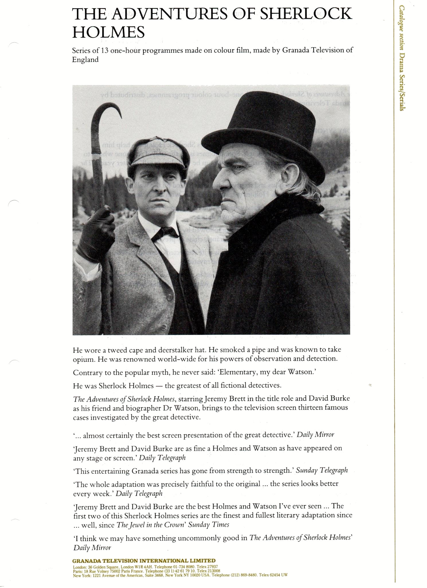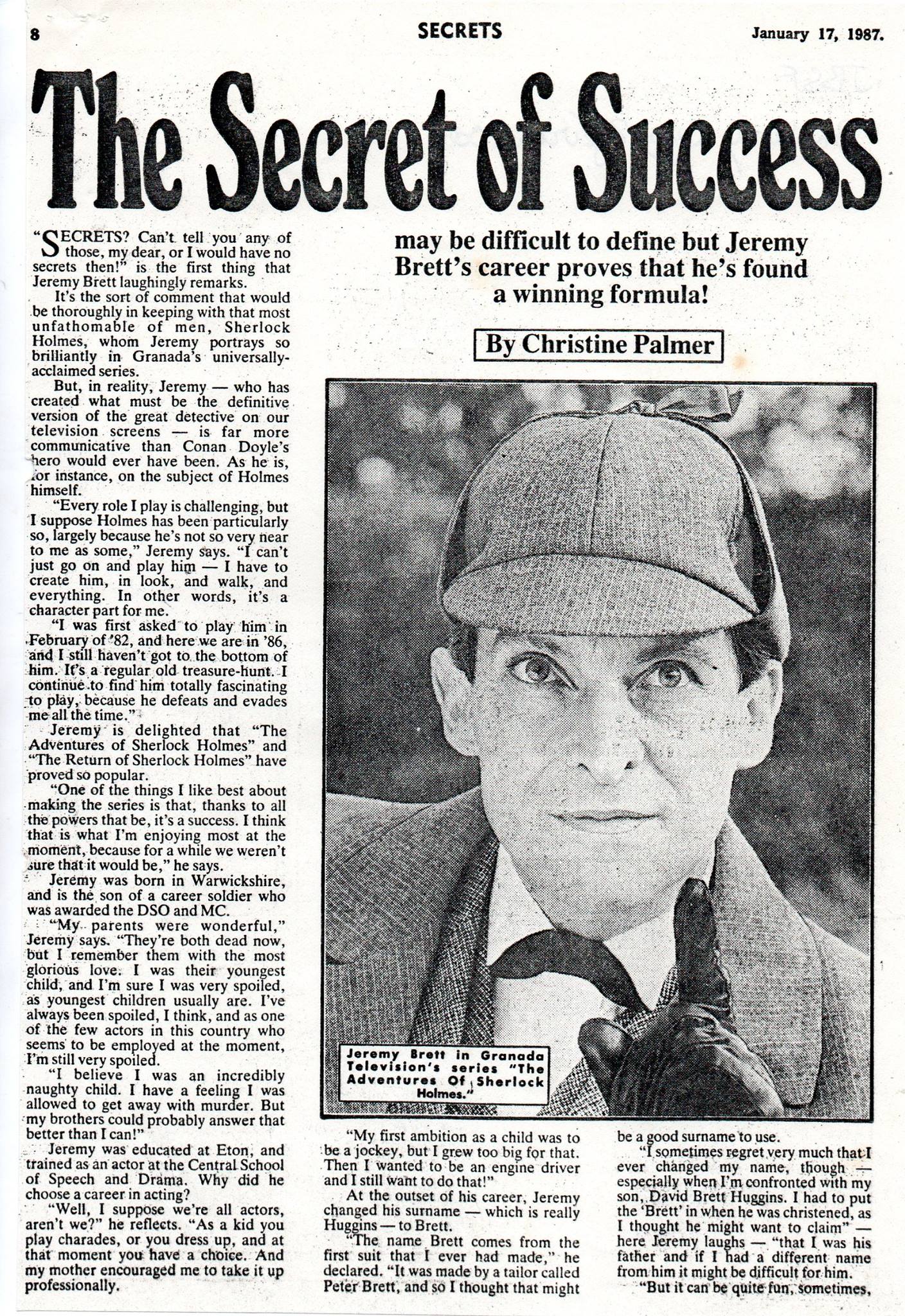 A TRIBUTE TO JEREMY BRETT paru dans la revue Scarlet Street, The Magazine of Mystery and Horror, No. 21, Winter 1996. Dans cet hommage, David Burke et Edward Hardwicke racontent leurs souvenirs et anecdotes pendant leurs années de travail avec Jeremy Brett.