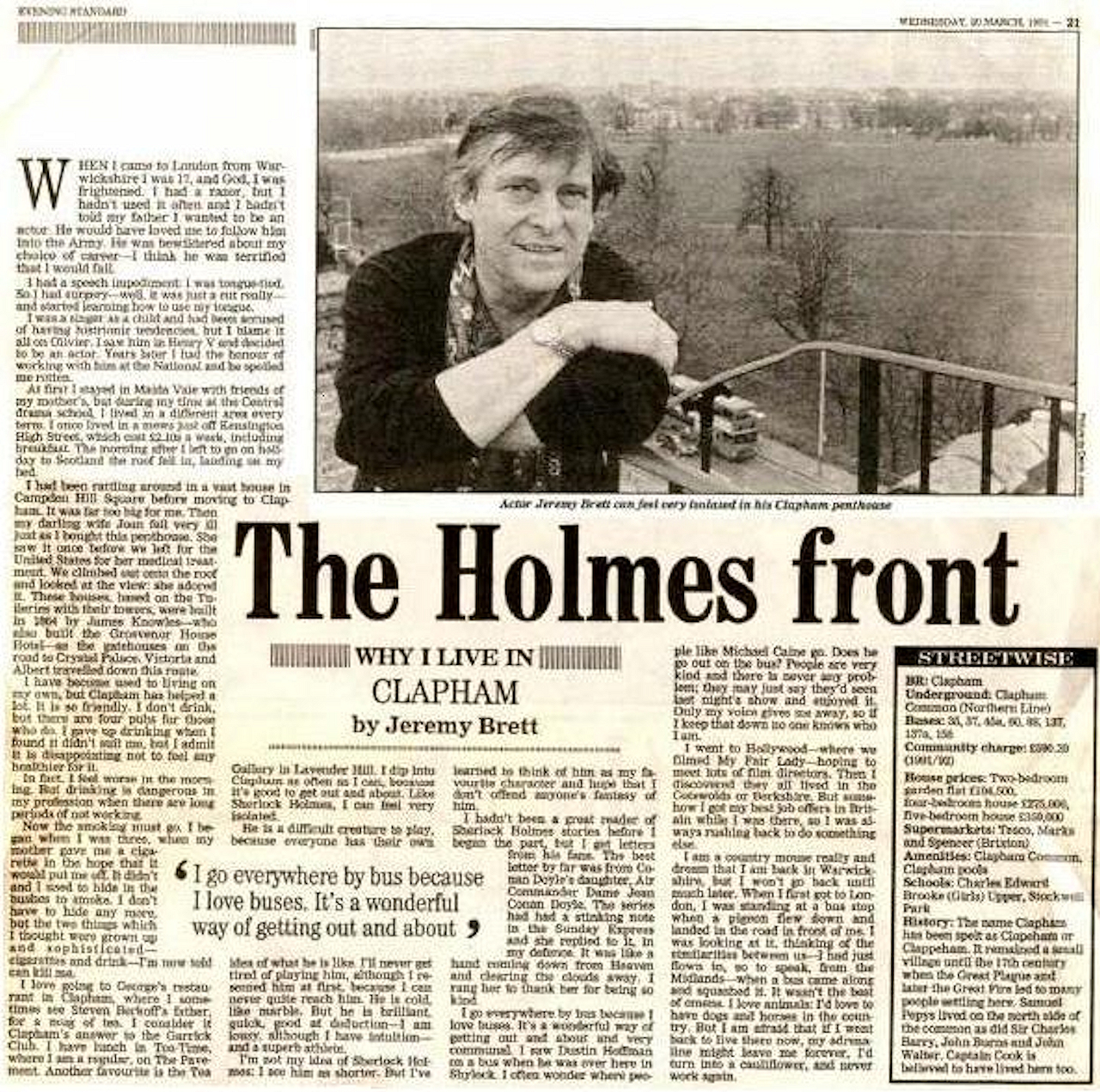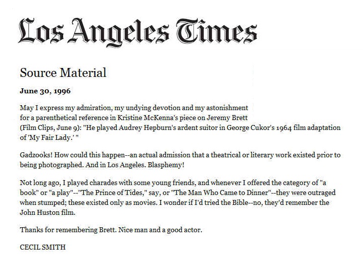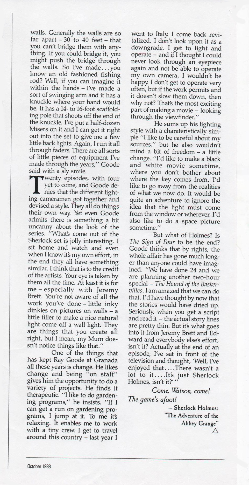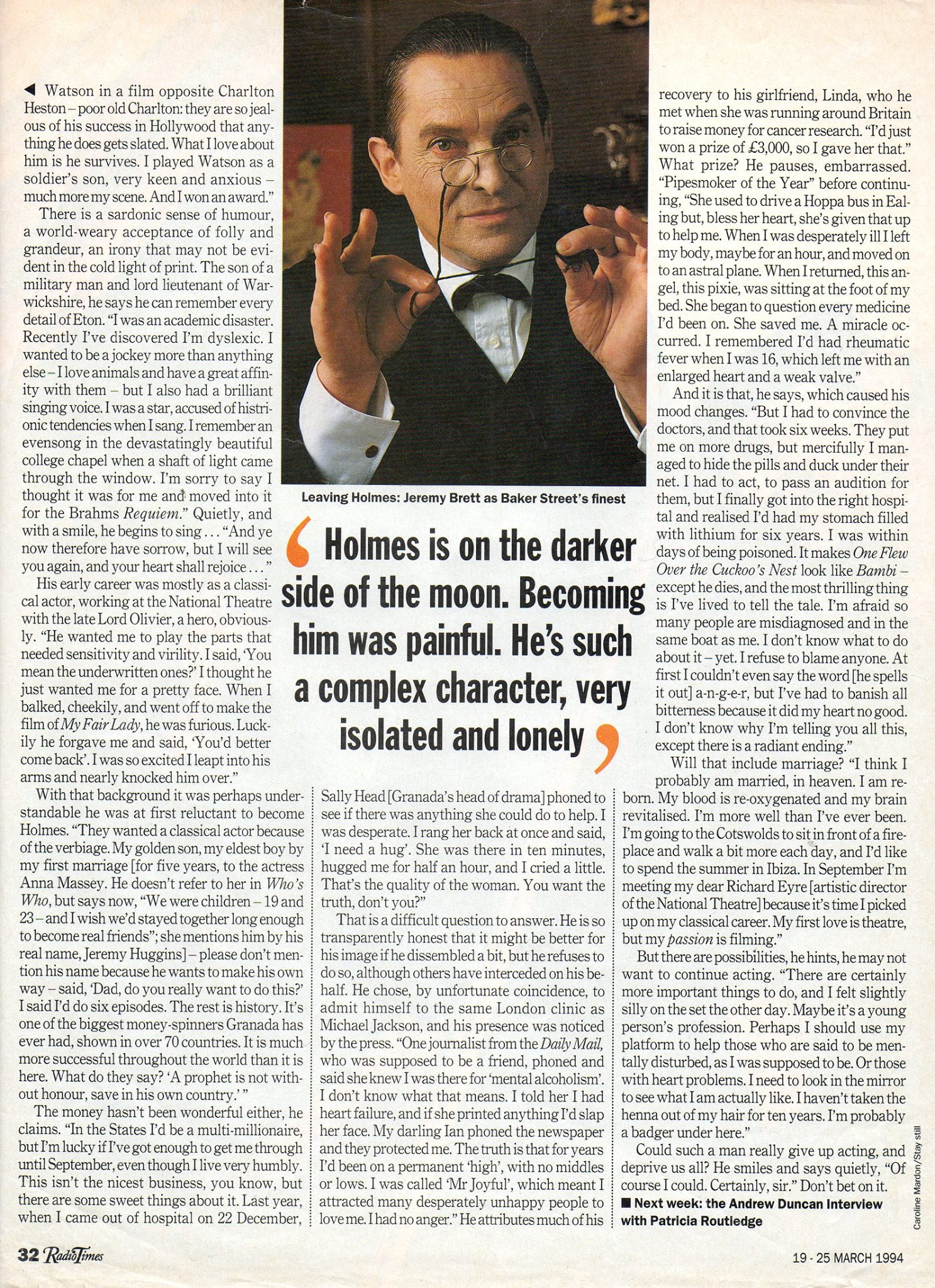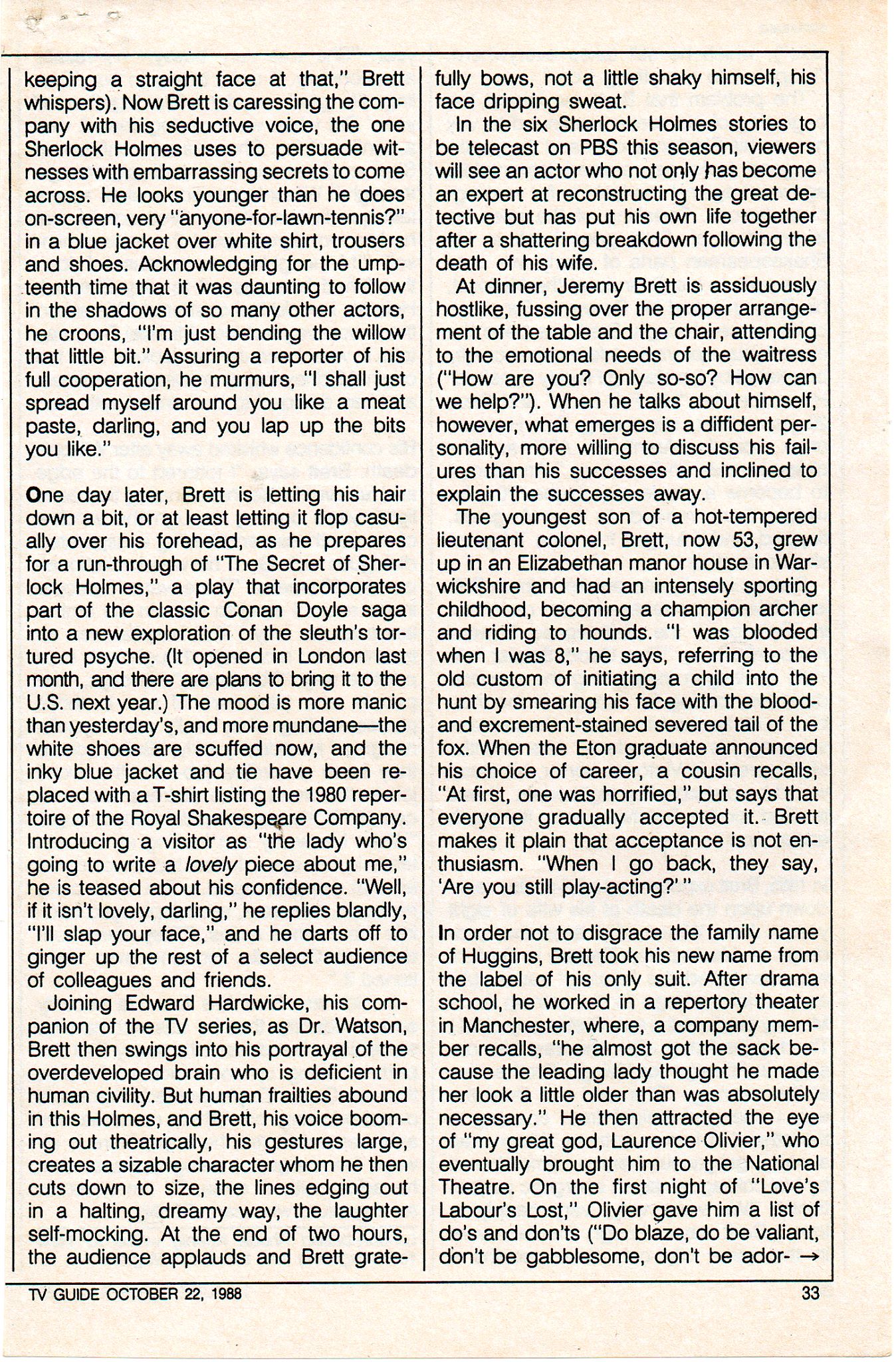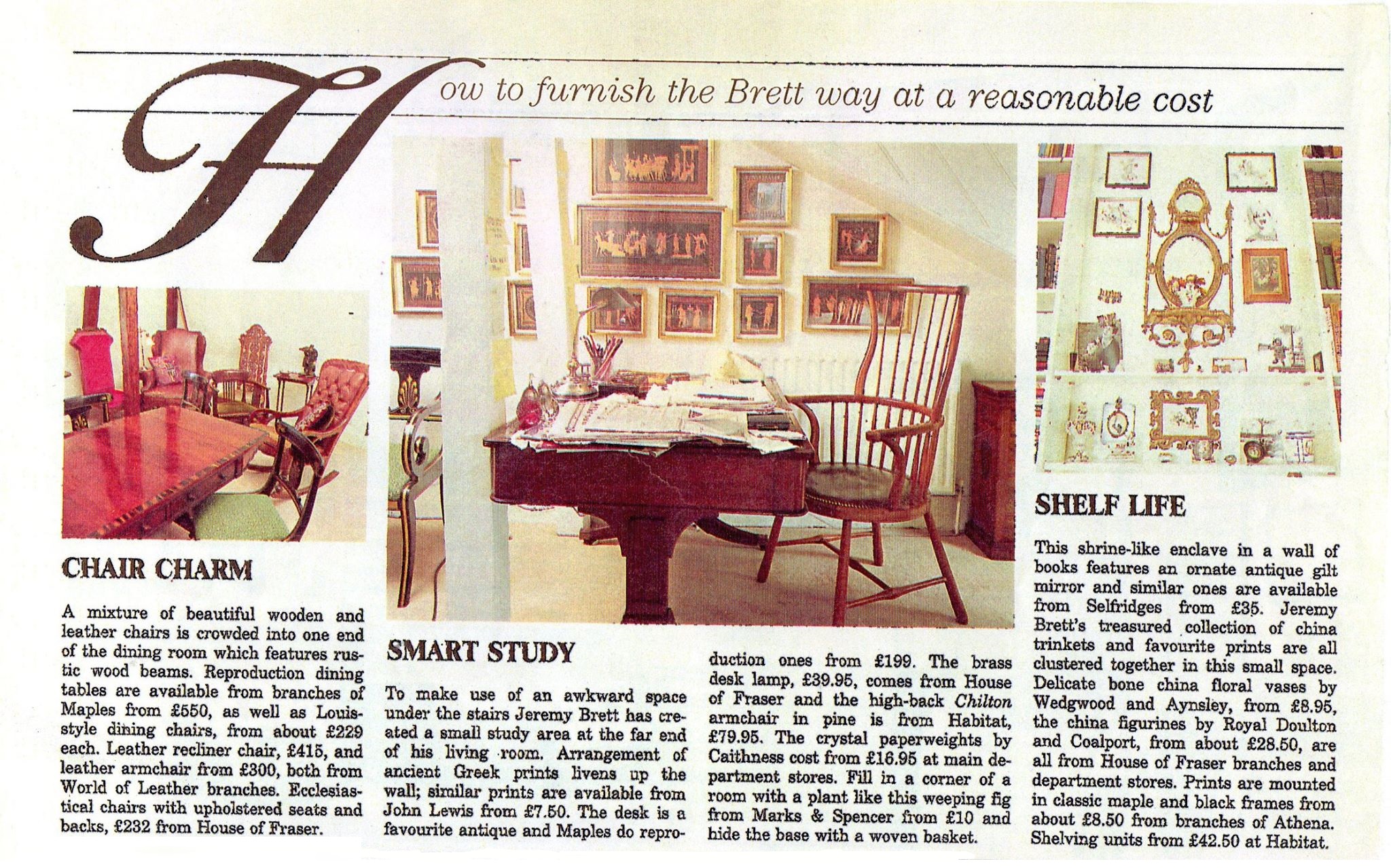 A TRIBUTE TO JEREMY BRETT paru dans la revue Scarlet Street, The Magazine of Mystery and Horror, No. 21, Winter 1996. Dans cet hommage, David Burke et Edward Hardwicke racontent leurs souvenirs et anecdotes pendant leurs années de travail avec Jeremy Brett.