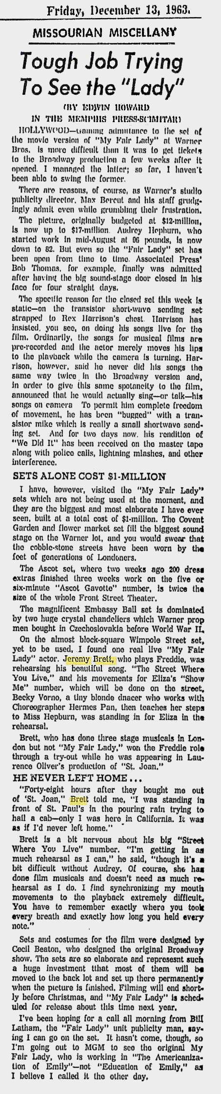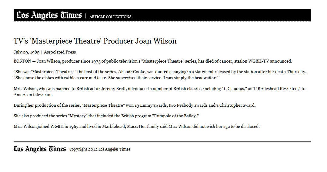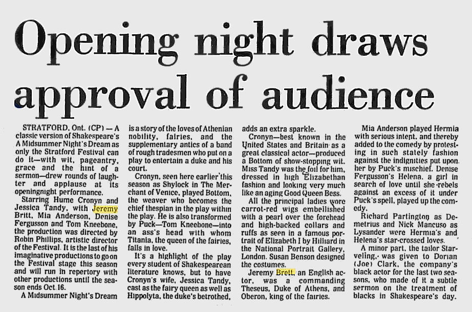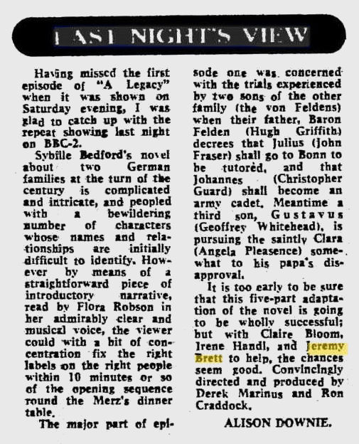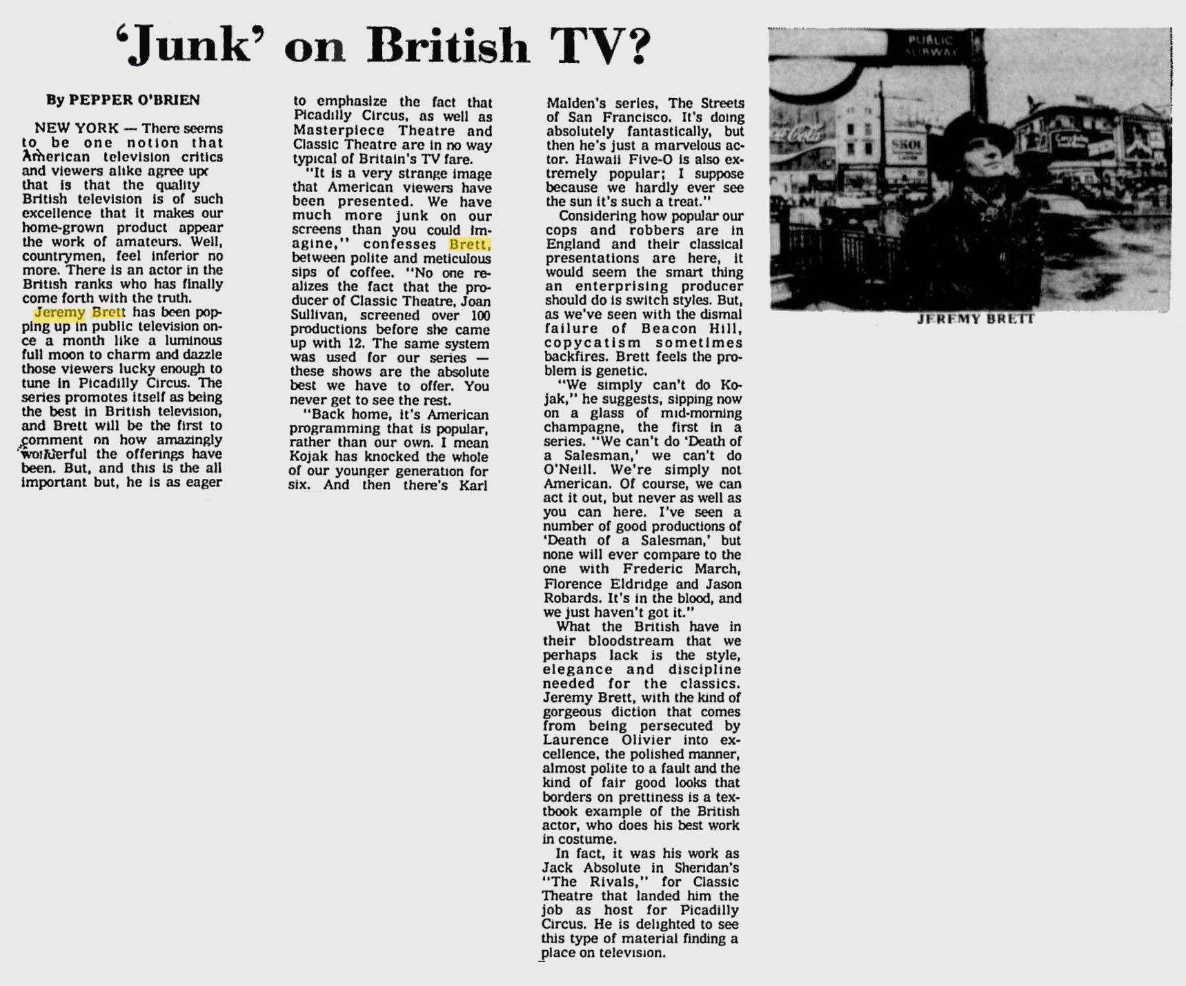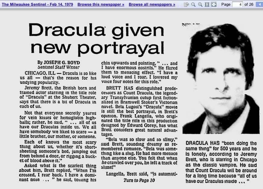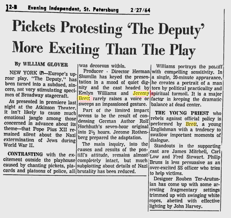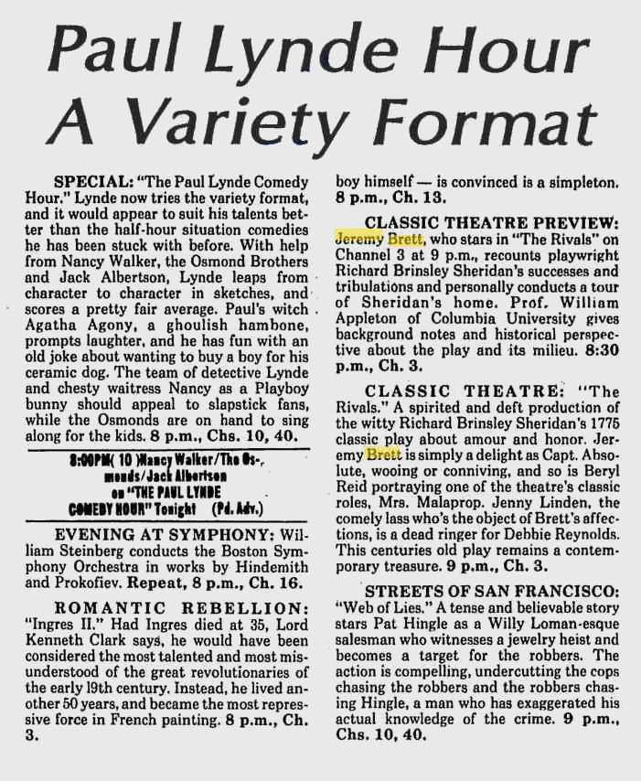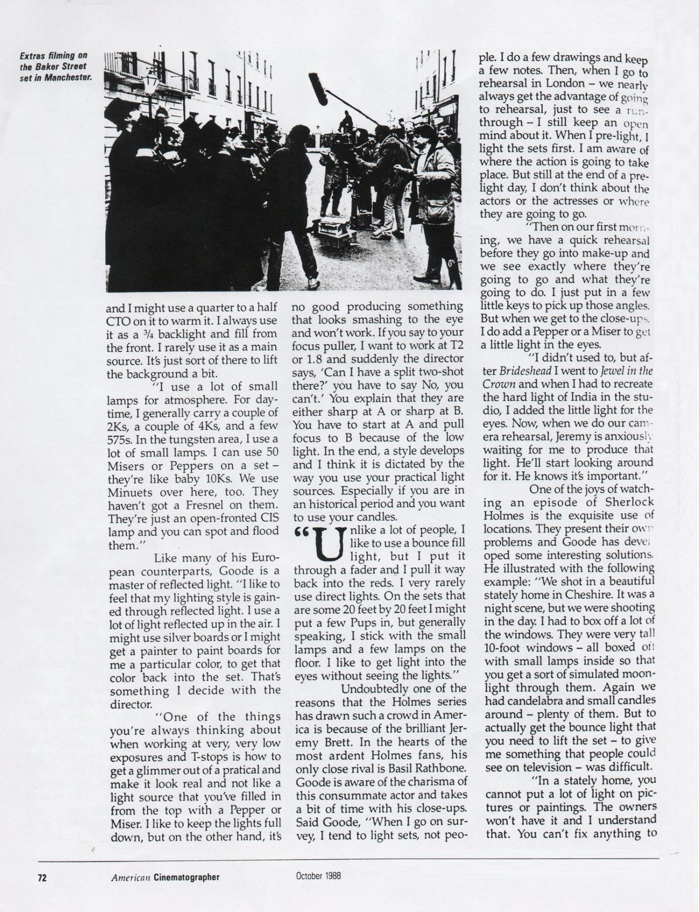 A TRIBUTE TO JEREMY BRETT paru dans la revue Scarlet Street, The Magazine of Mystery and Horror, No. 21, Winter 1996. Dans cet hommage, David Burke et Edward Hardwicke racontent leurs souvenirs et anecdotes pendant leurs années de travail avec Jeremy Brett.