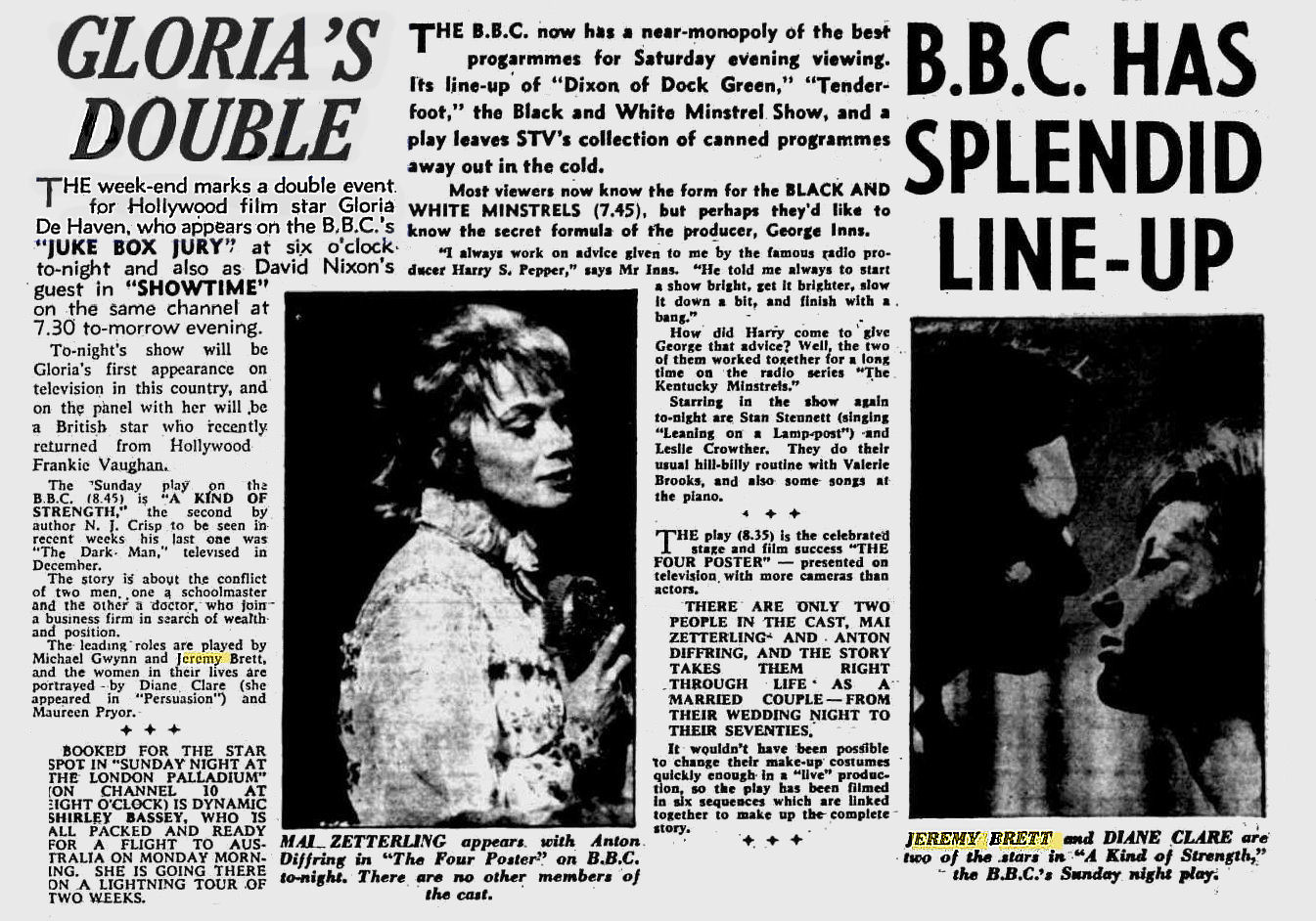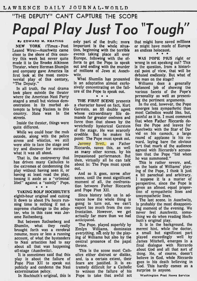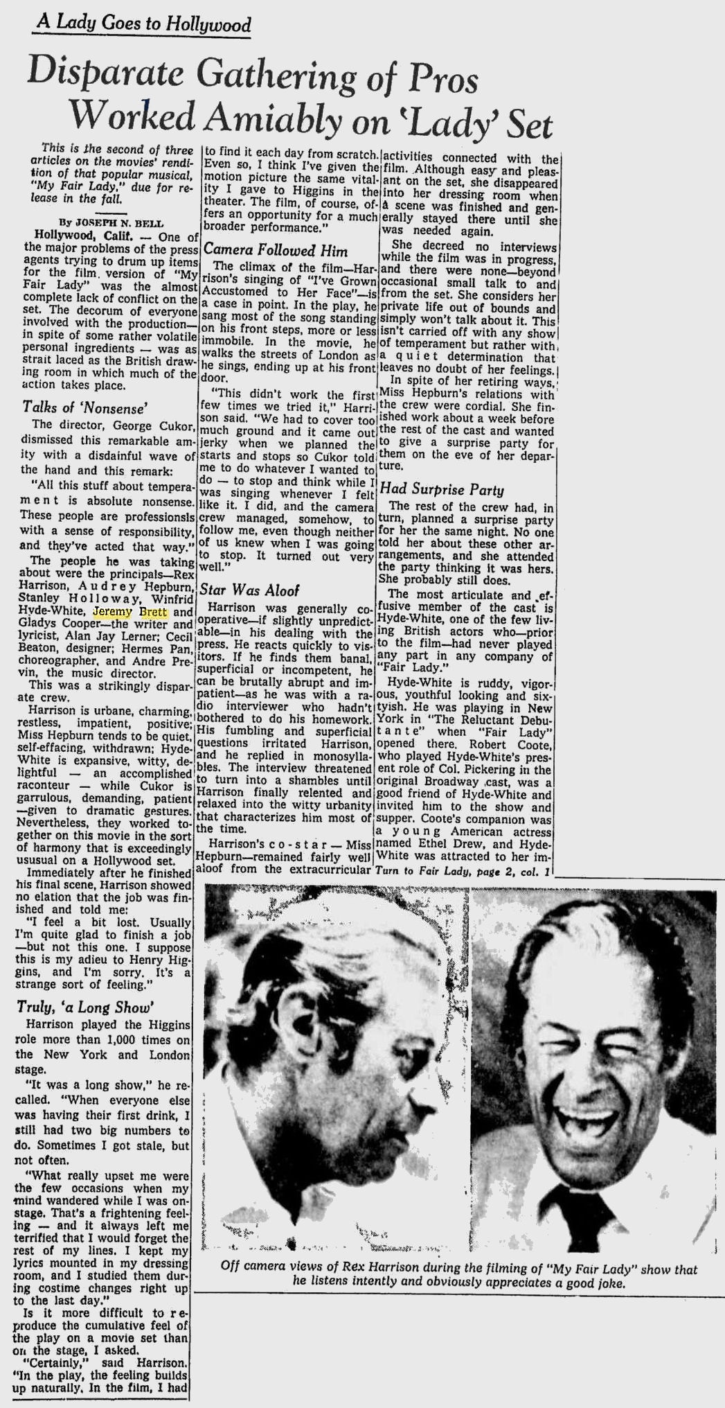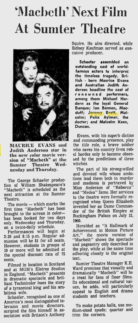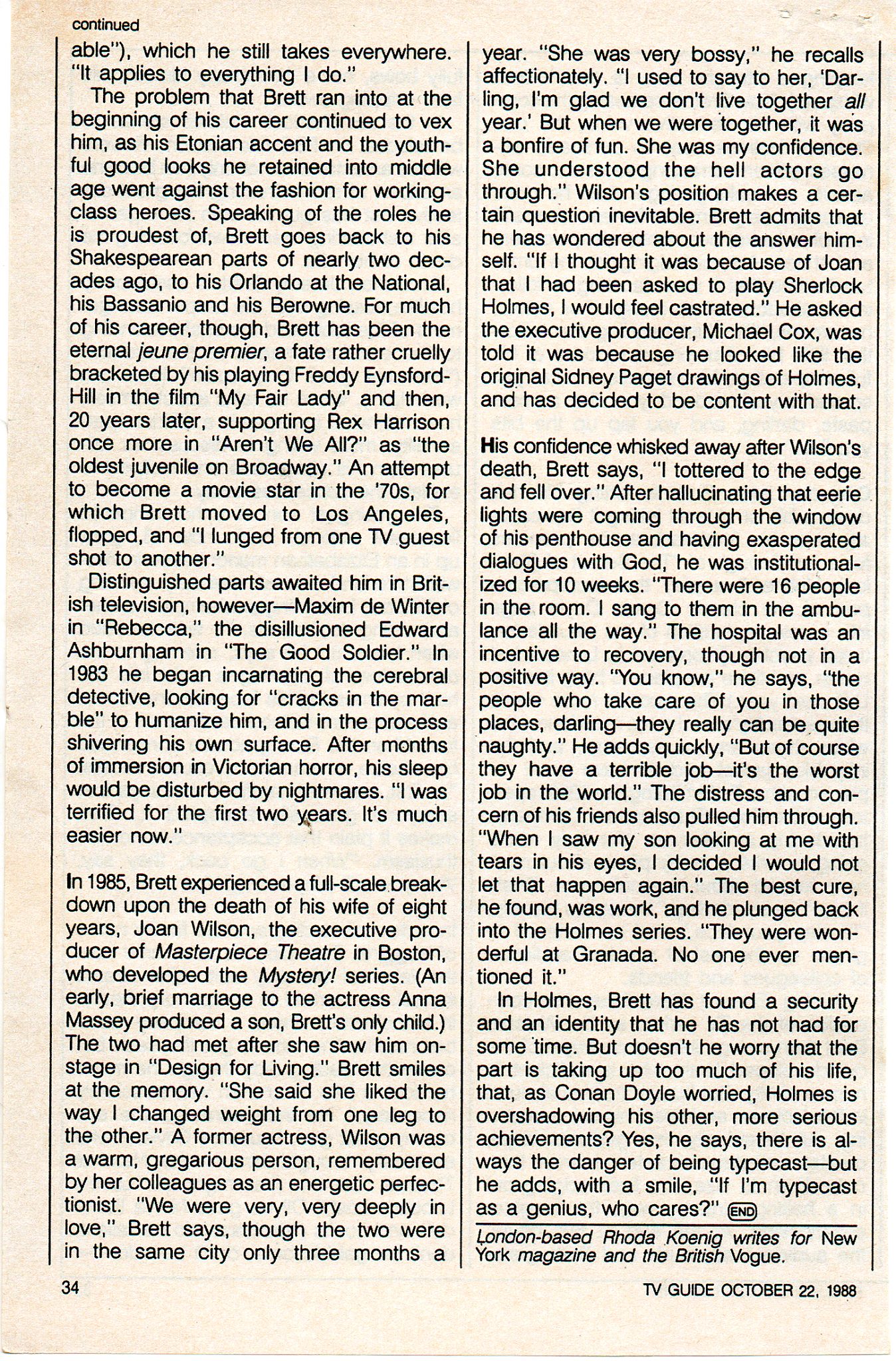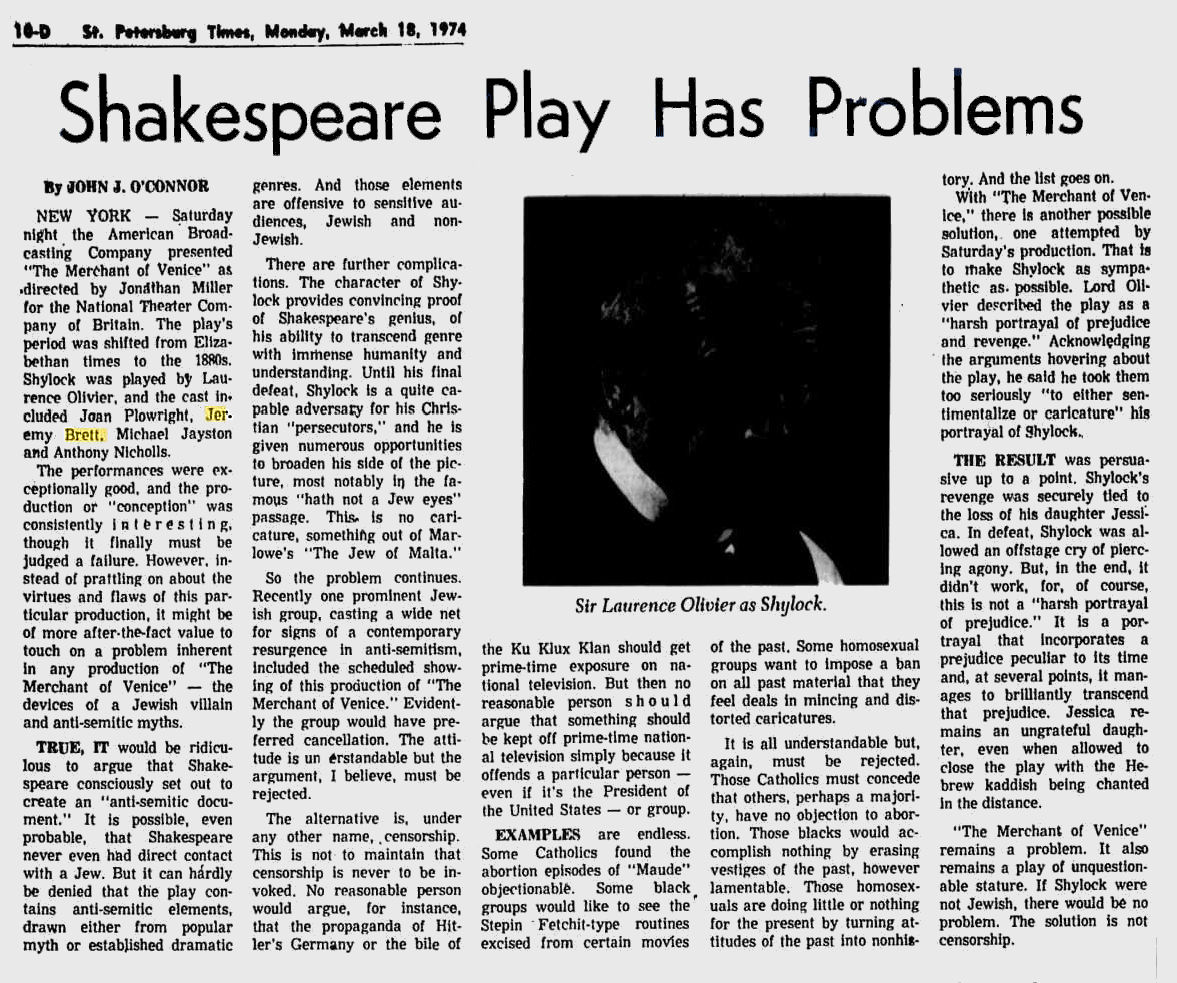 A TRIBUTE TO JEREMY BRETT paru dans la revue Scarlet Street, The Magazine of Mystery and Horror, No. 21, Winter 1996. Dans cet hommage, David Burke et Edward Hardwicke racontent leurs souvenirs et anecdotes pendant leurs années de travail avec Jeremy Brett.