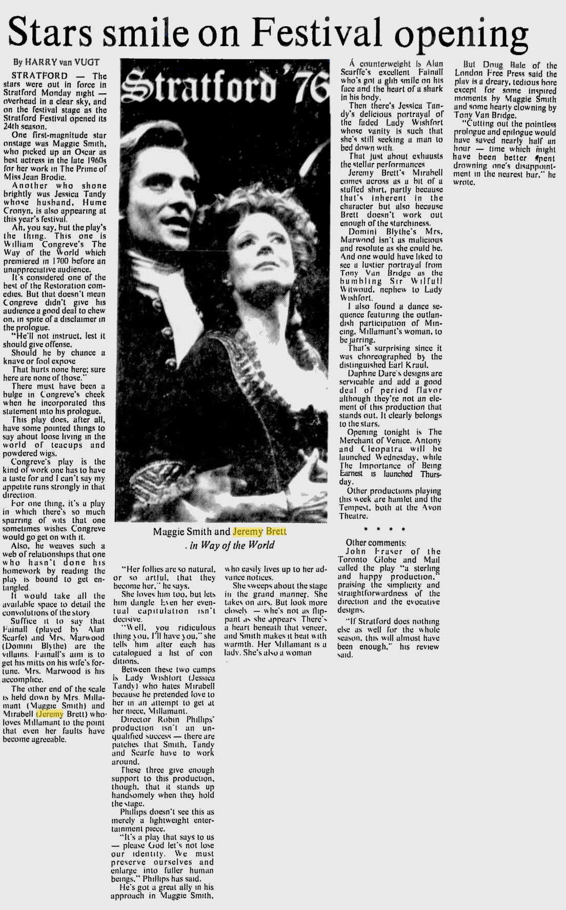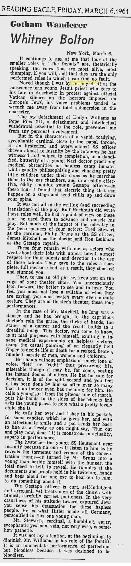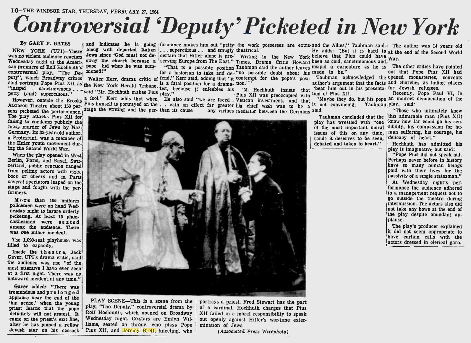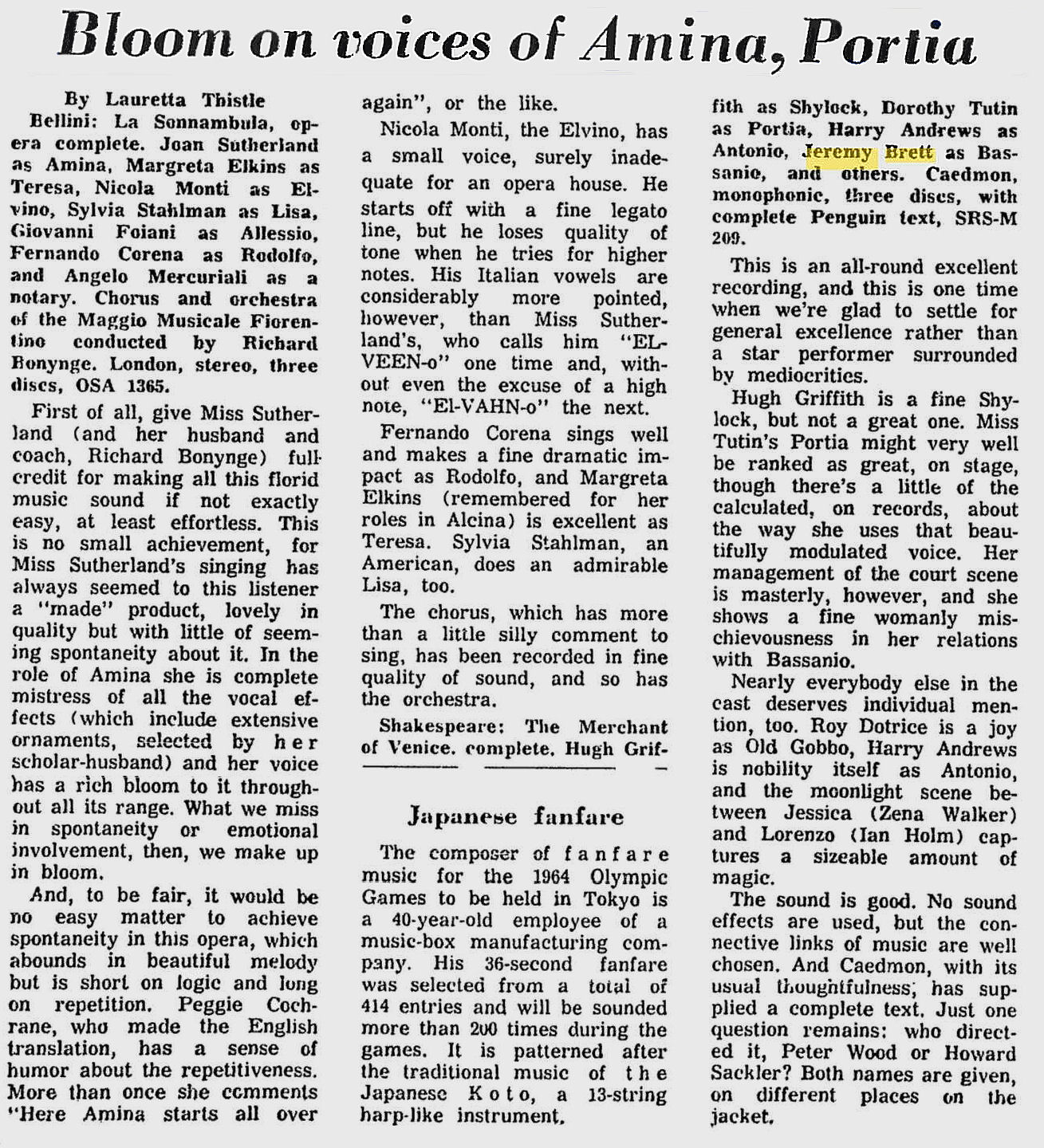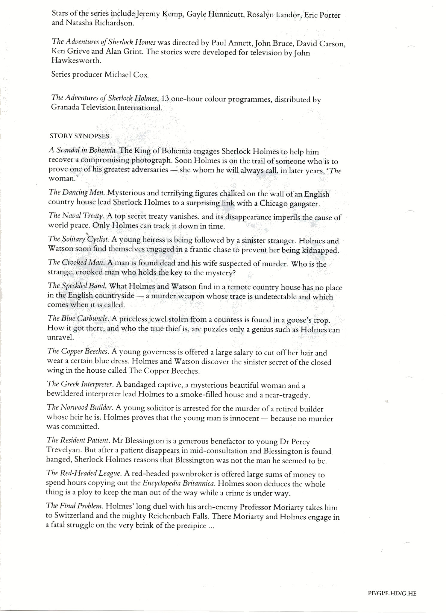 A TRIBUTE TO JEREMY BRETT paru dans la revue Scarlet Street, The Magazine of Mystery and Horror, No. 21, Winter 1996. Dans cet hommage, David Burke et Edward Hardwicke racontent leurs souvenirs et anecdotes pendant leurs années de travail avec Jeremy Brett.