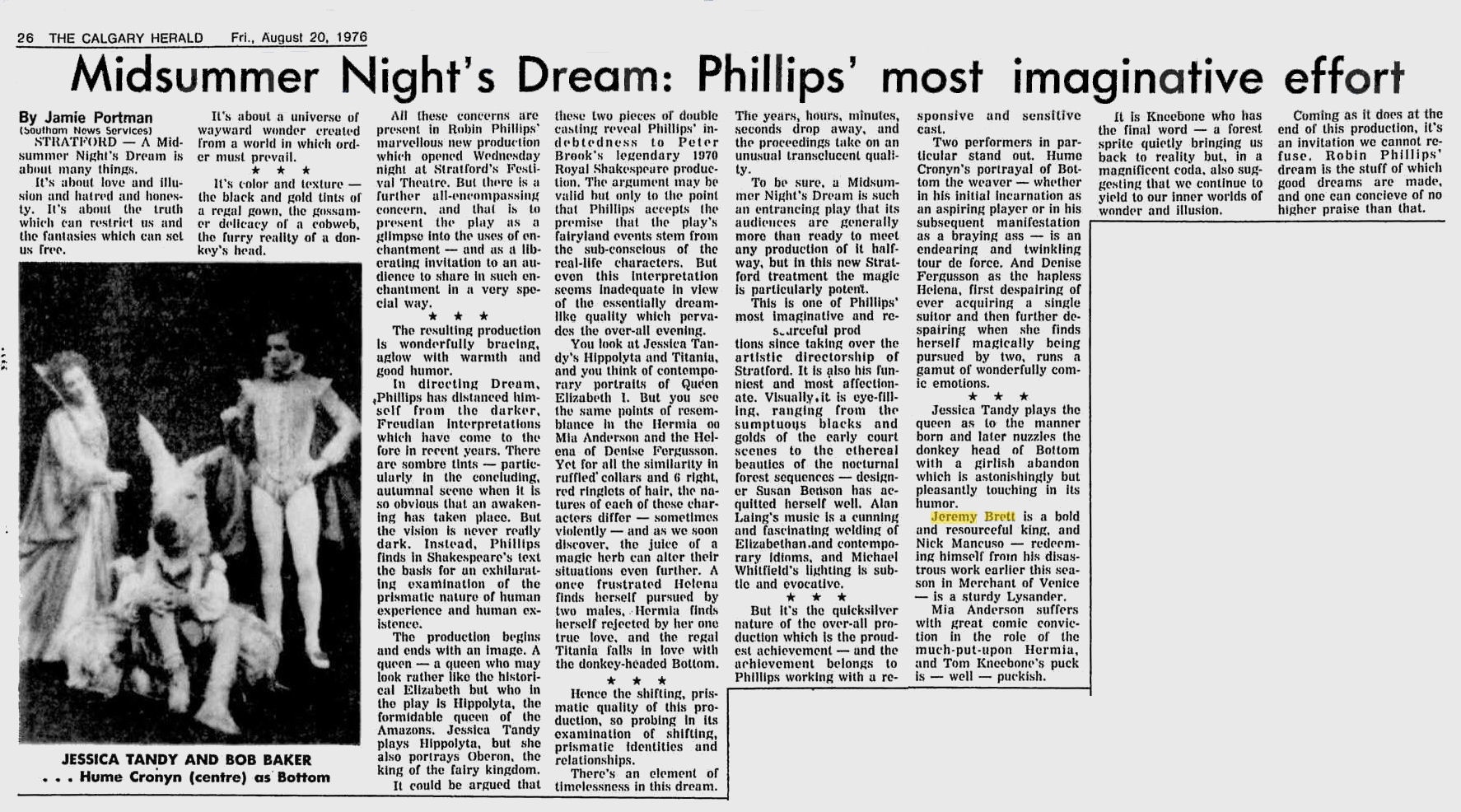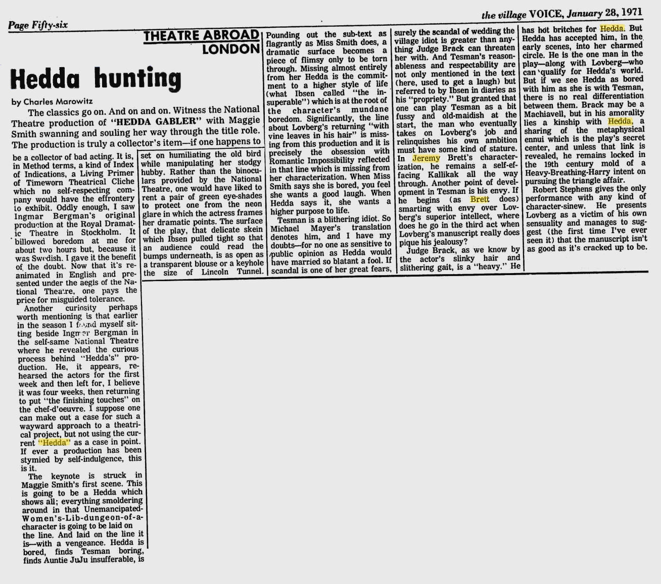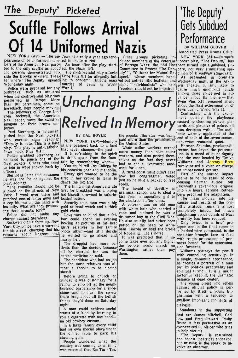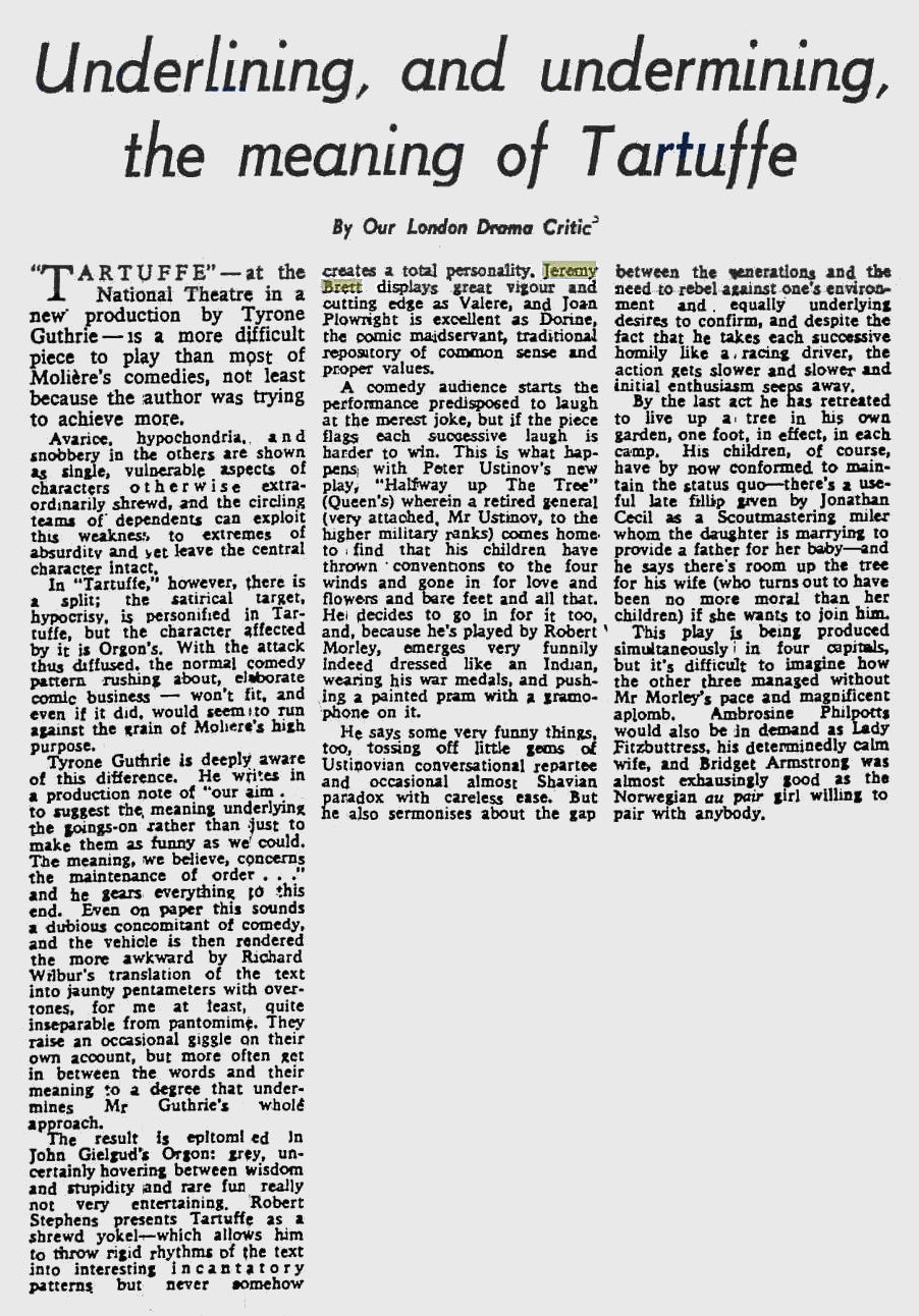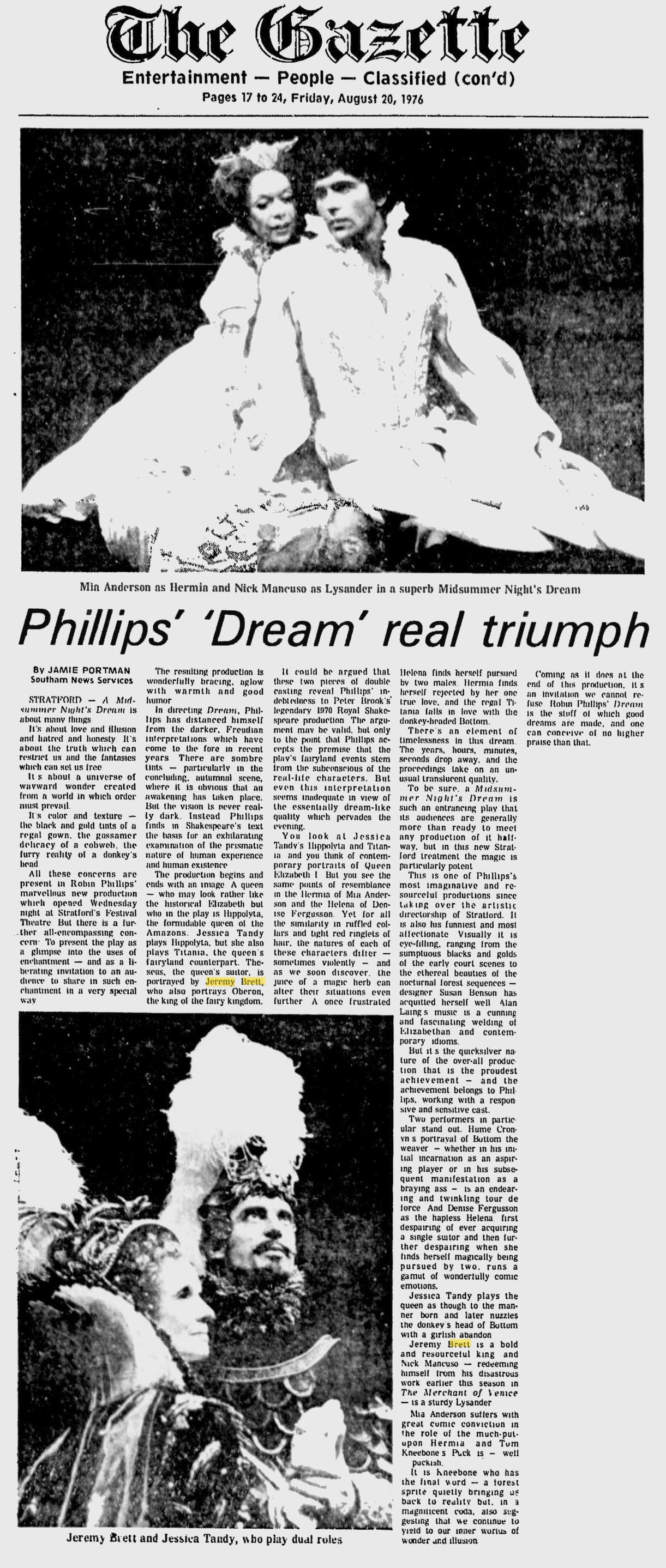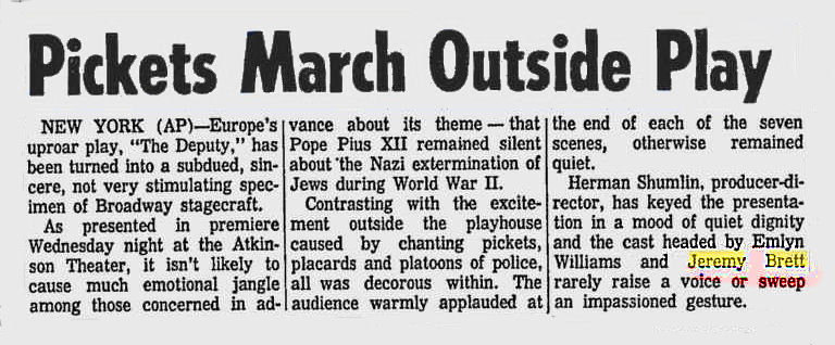 A TRIBUTE TO JEREMY BRETT paru dans la revue Scarlet Street, The Magazine of Mystery and Horror, No. 21, Winter 1996. Dans cet hommage, David Burke et Edward Hardwicke racontent leurs souvenirs et anecdotes pendant leurs années de travail avec Jeremy Brett.